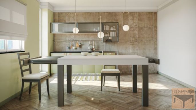 AJA027 - TableMesa de sala retangular; c/ 1700*1000; c/ 2 extensões 500mm+500mm c/ faqueiro laterais Disponível em varias medidas e madeiras